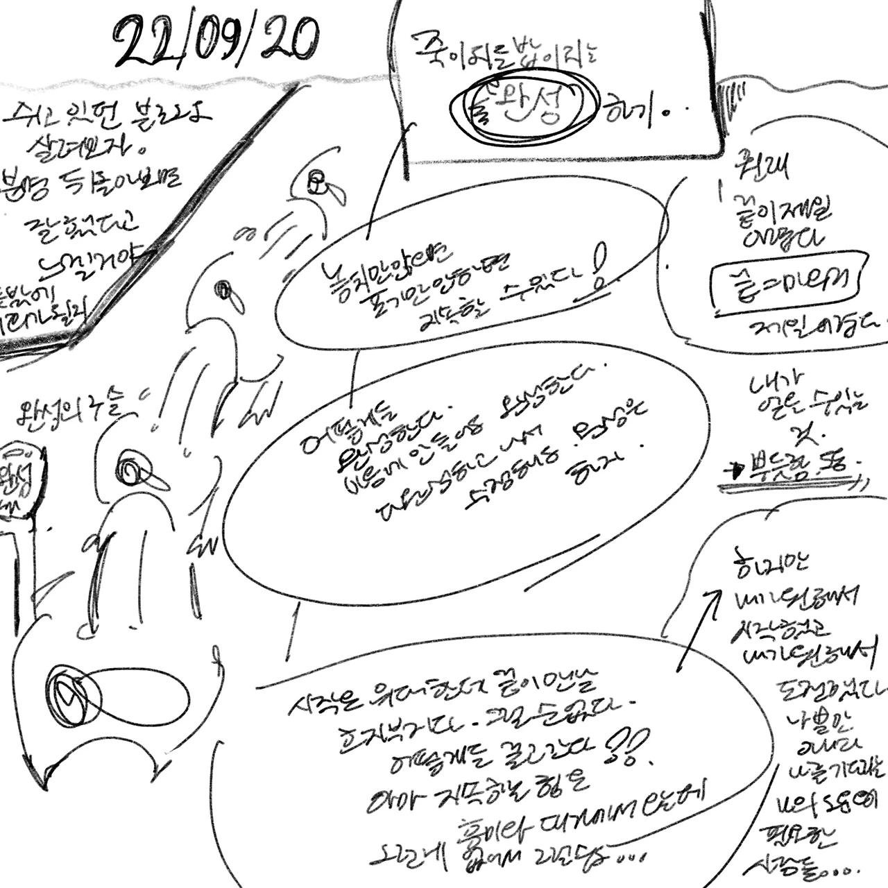 다행히 물고 늘어지는 집념이 강한 편이라 시간이 오래 걸려도 어찌어찌 완성은 한다. 최근 욕심이 많아질수록 벌려놓은 일들에 대한 수습을 버거워하는 것 같다. 그래! 어찌 되었던 일단 완성하자. 분명 완성함으로써 얻어가는 게 있다. 작고 하찮으면 어때.