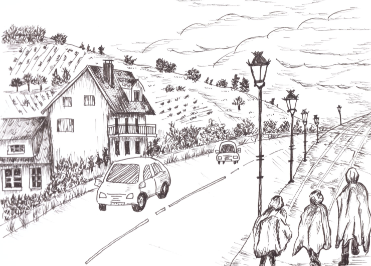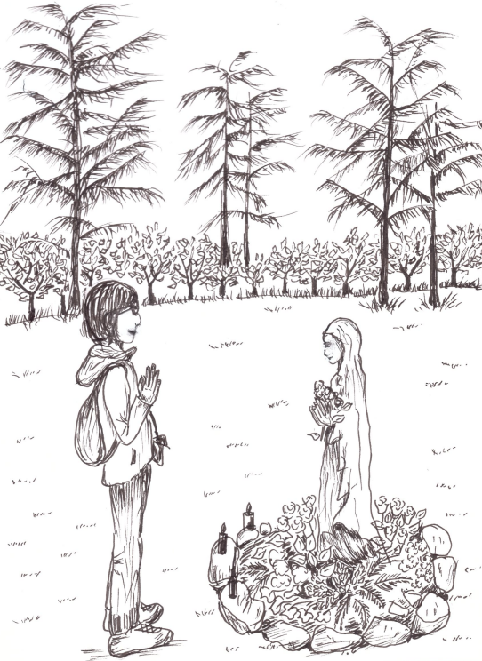성당과 광장 등 구시가지를 통과하여 시 외곽을 향해 걸었다. 우연히 고개를 돌려 동쪽을 보니 붉은 하늘이 구름, 해, 나무와 조화를 이루며 환상적으로 보였다. 근처 붉은빛을 받은 성모 마리아상도 아름다웠다. 나도 모르게 두 손을 모았다.