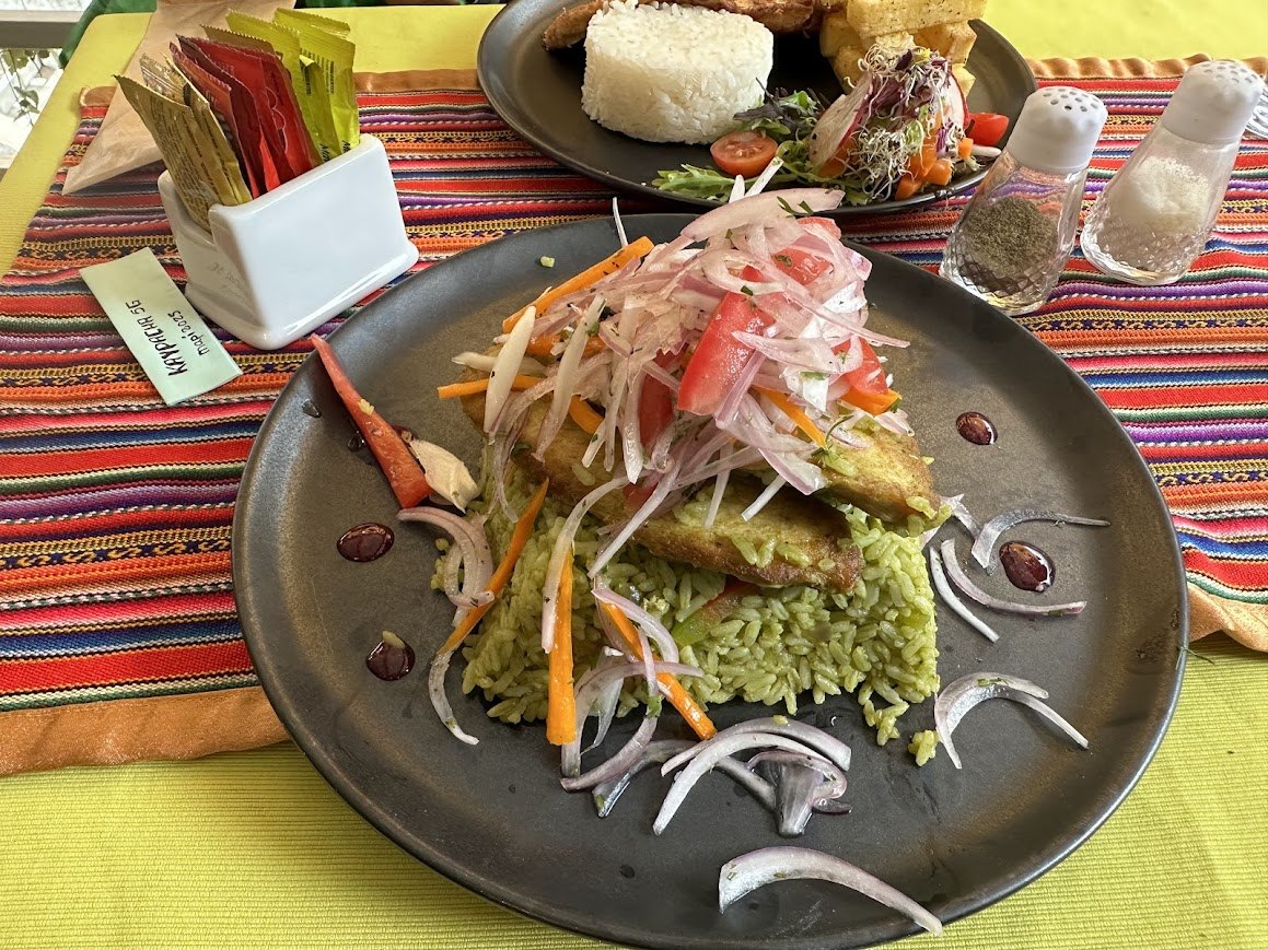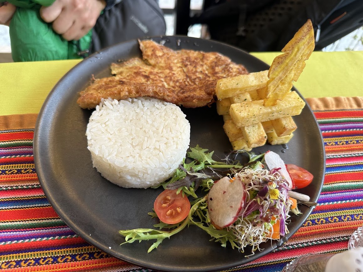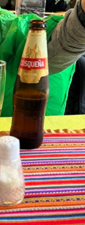 마추픽추 돌아본 후 셔틀버스를 타고 내려왔다. 날씨가 점점 맑아지고 파란 하늘이 나타나는가 싶더니 갑자기 장대비가 쏟아졌다. 얼른 비옷을 꺼내 입고 가까이 보이는 식당으로 들어갔다. 로컬 맥주와 식당 주인이 추천한 페루 전통 음식을 먹었는데 쌀과 고기가 있는 푸짐한 음식이 나왔다. 맥주 맛은 좋았지만, 음식 맛은 그냥 먹을만했다.