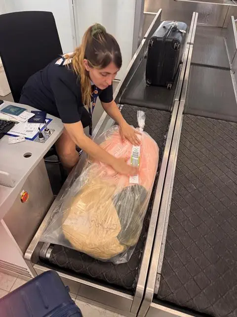 트랜스아비아 항공 직원들은 로버츠가 무사피아 케이스에 스트라디바리 바이올린을 넣고