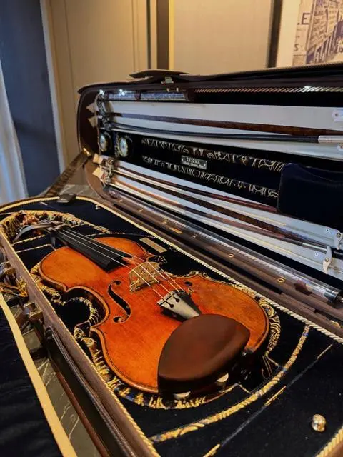 악기 케이스에 넣어 기내에 반입했습니다. 그는 무사피아(Musafia) 바이올린 케이스에 활을 넣어