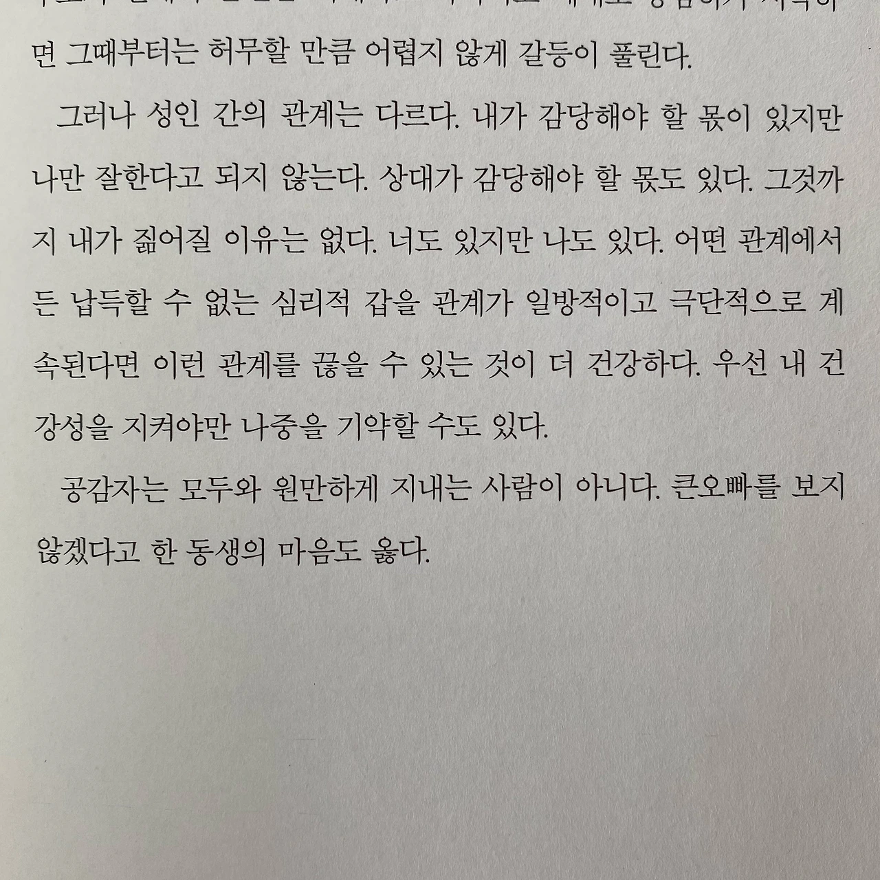 그날 고모 앞에서 엄마를 더 감싸지 못한 나 자신을 탓하기도, 고모에게 더 화를 내지 못한 것을 후회한다.