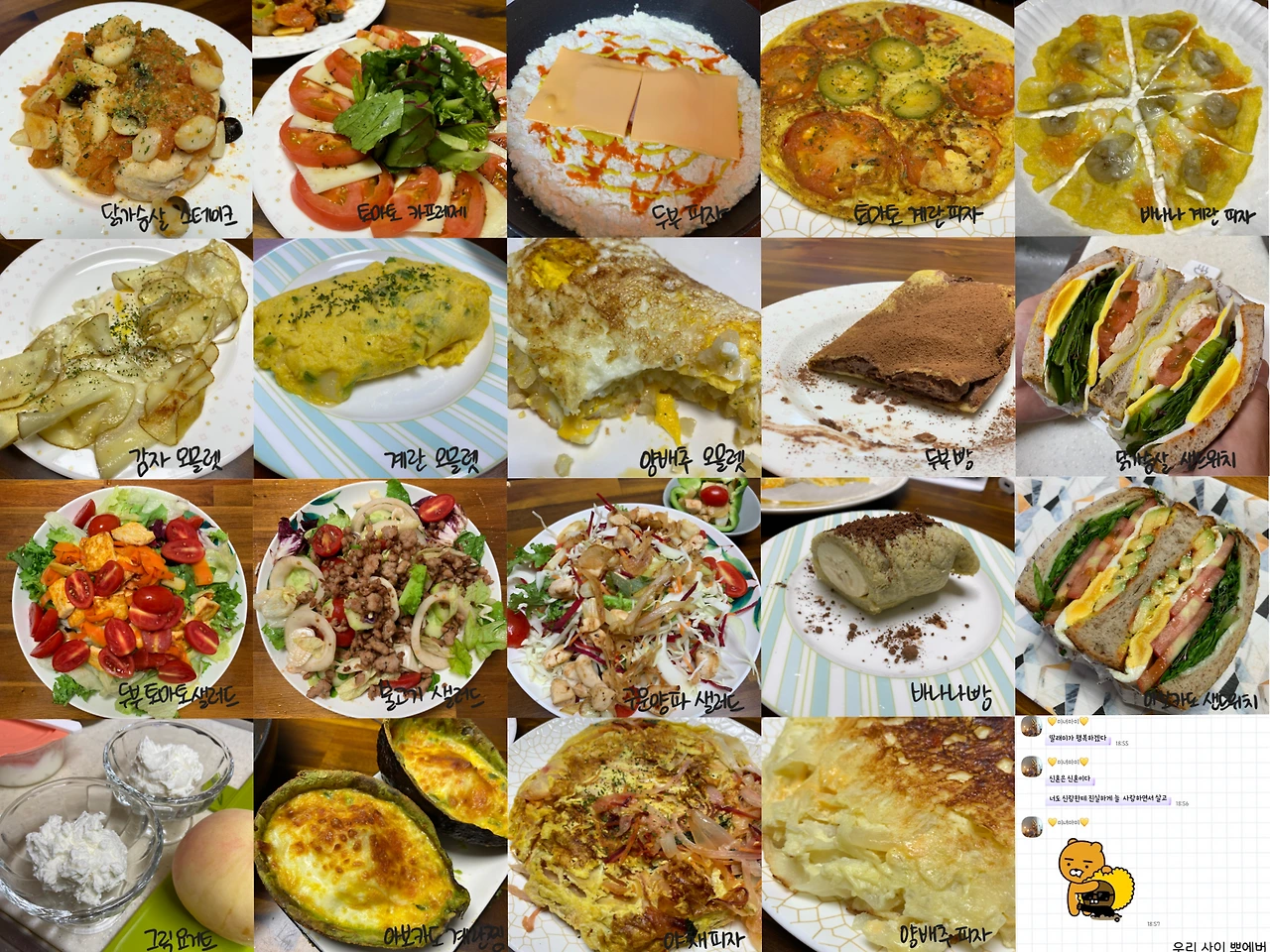 계란으로 만든 피자부터 시작해서 양배추, 토마토, 두부 등을 활용한 요리, 밀가루 없는 빵 등.