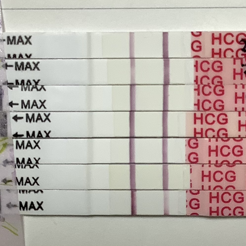 이틀에 한 번씩 hcg 수치가 뛰므로 이틀에 한 번만 테스트해봐도 된다고 하지만, 하루 사이에 연해질까 두려워서 매일 했다.