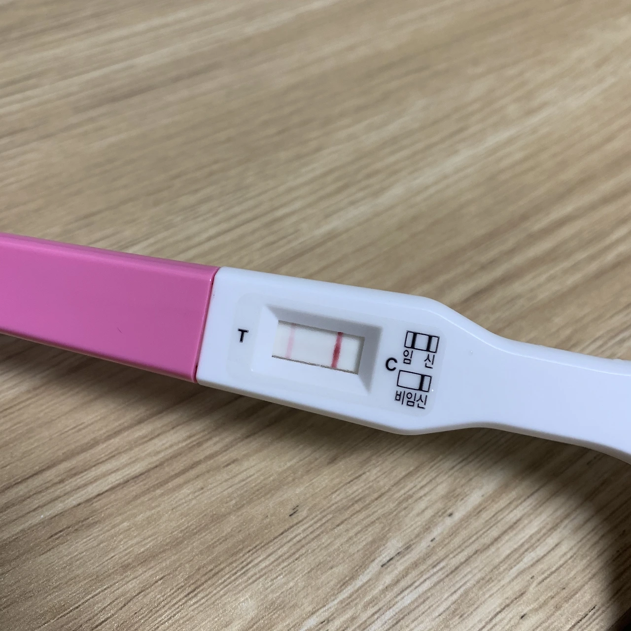 이른 새벽 눈이 떠졌고, 챙겨 온 임신테스트기를 꺼내 화장실에 갔다. 어제보다 선이 옅었고 자고 있는 남편을 흔들어 깨워서 보여줬다.