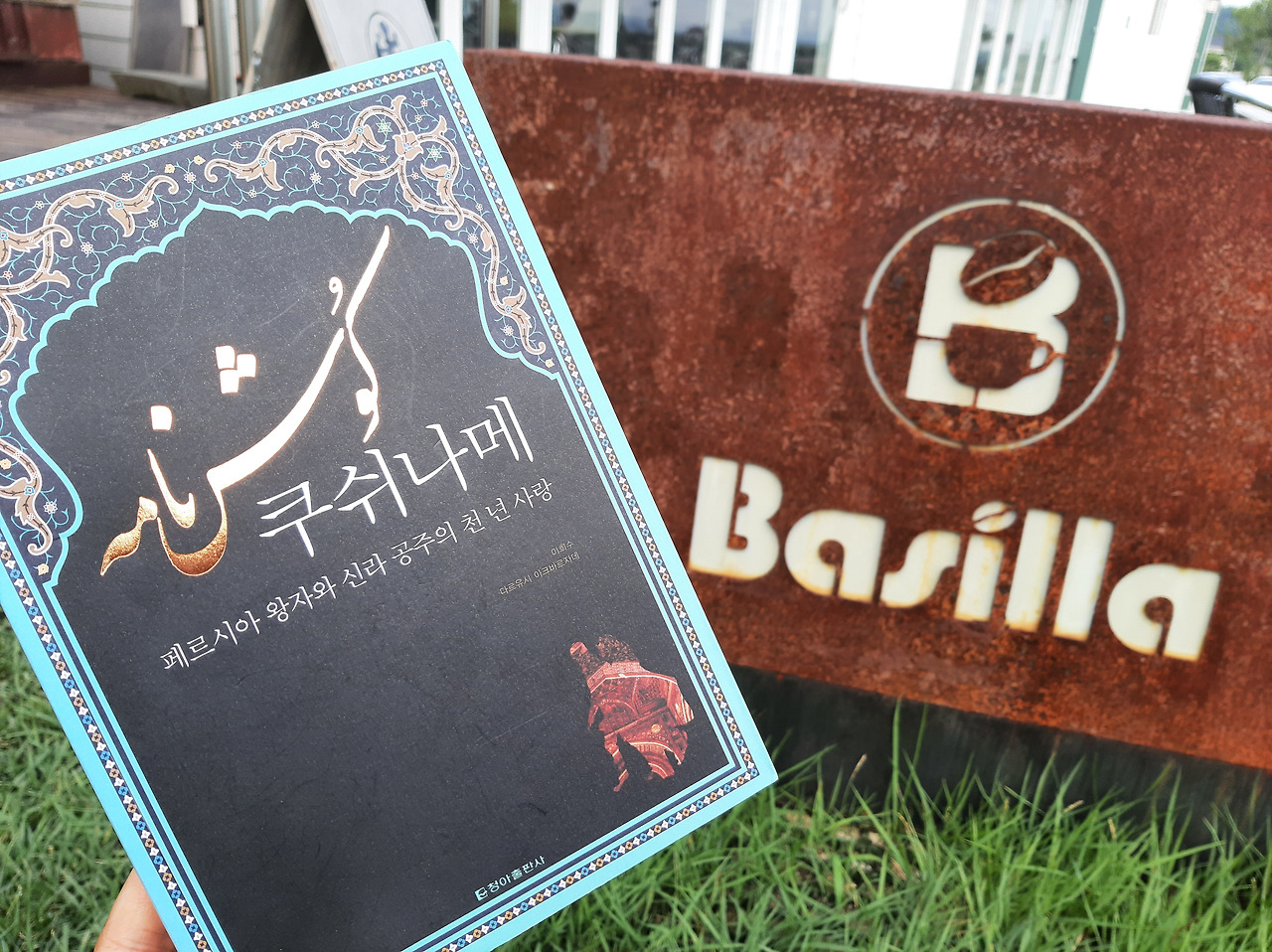 경주에서 유명한 카페 중의 하나가 하동 저수지 앞의 「바실라」이다. 해바라기 철에는 해바라기가 노란 자석이 되어 사람들을 끌어들인다. 바실라 카페는 엄청난 크기와 아름다운 정원에 눈길이 가기 쉽지만, 세세히 살펴보면 『쿠쉬나메』에 충실하게 외관과 실내장식을 했다. 건물은 2017년 경주시 건축상을 받을 정도로 웅장하다. 마치 바실라의 왕궁처럼 지붕도 높게 지어졌고, 기와는 입수쌍조 수막새로 마무리했다. 선반은 이슬람풍 그릇으로 가득하다. 그리고 경주에 하나뿐인 ‘얼굴무늬 수막새’ 조형물이 마치 태후르의 미소처럼 웃고 있다. 바실라 카페를 찾아 『쿠쉬나메』의 구절과 맞춰보는 시간은 모험가가 된 듯한 재미를 주었다.