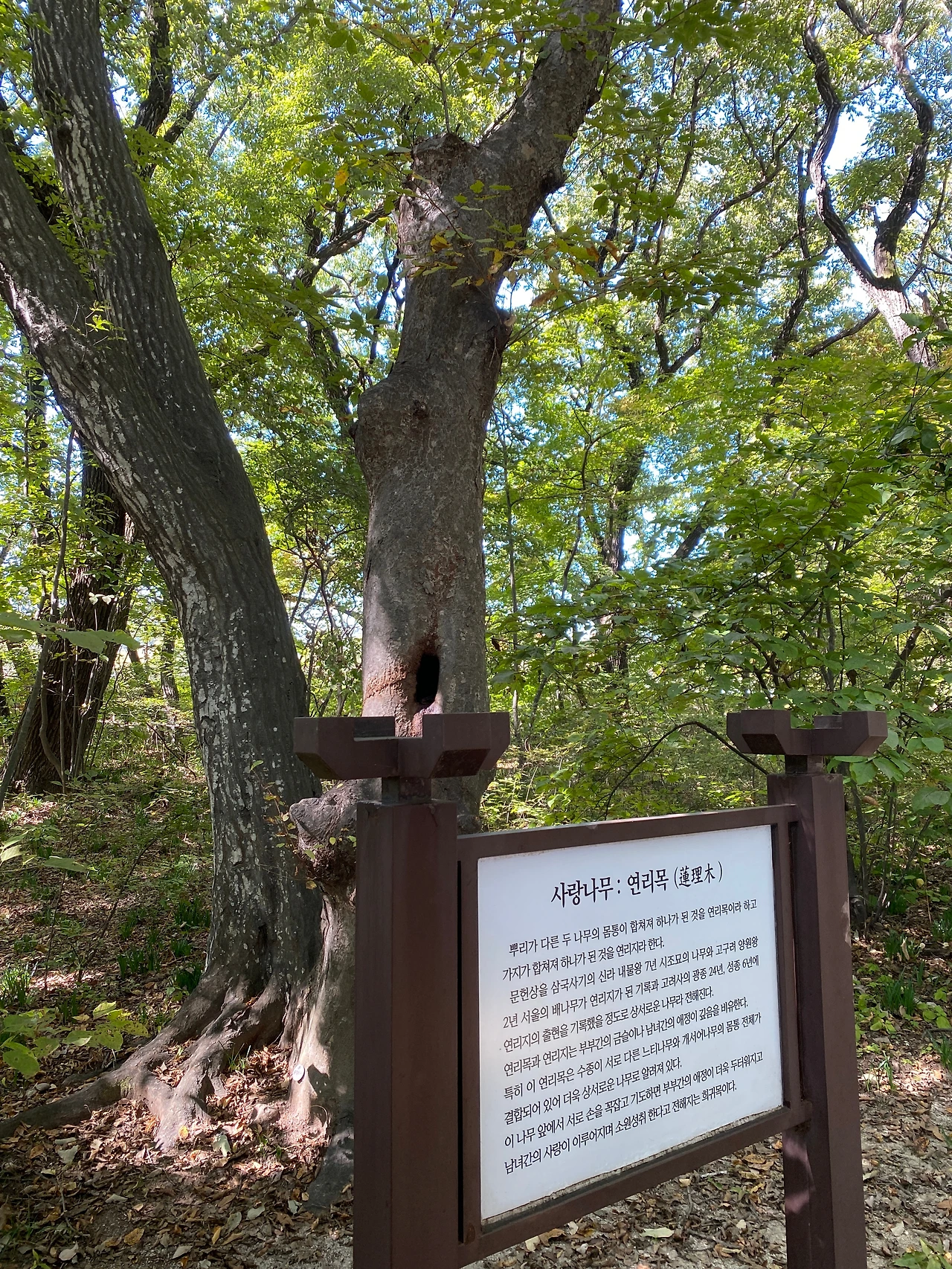 그때 나는 부산으로 이사한 지 얼마 되지 않았고, 부산의 해운대라는 이름이 최치원 선생에게서 유래되었다는 사실에 매료되어 매일같이 동백섬 최치원 동상 아래에 놀러 가곤 했었다. 경주의 최치원이 부산의 최치원으로 나타났고, 이제는 함양의 최치원이 되었다. 상림은 꼭 가봐야겠다는 생각이 들어 돌아오는 길에 들렀다. 그때가 늦가을인지 초겨울인지 기억이 나지 않지만 상림에는 낙엽이 모두 떨어져서 고혹한 분위기였다. 자연 그대로의 거친 거북바위와 사랑으로 하나가 된 연리목 나무가 우리를 반겨준다. 아이들은 ‘무궁화꽃이 피었습니다’ 놀이를 하며 마치 동네 아이들처럼 놀았다. 상림에 있는 최치원 신도비에서 최치원 선생을 만나 “부산에서 왔어요”라고 가볍게 인사를 했다. 그 뒤로 통영-대전 고속도로를 이용할 때면 가끔 상림에 머물며 숲도랑에 졸졸 흐르는 물소리를 들었다.