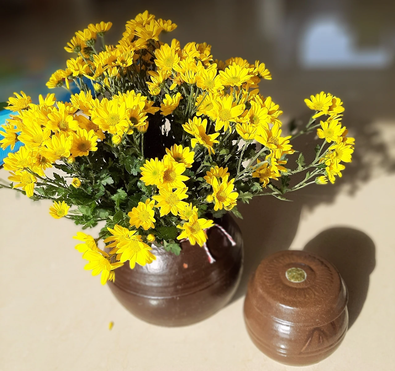 갑자기 내 시선이 우두커니 부엌 뒤편에 서있는 빈 단지로 간다. 역할을 찾지 못하고 비어있는 단지가 쓸쓸해 보인다. 저 단지도 쓸모 있게 만들면 좋겠다. 무엇을 담을까? 아무리 고민을 해도 생각나지 않는다. 생활필수품이던 옹기는 점차 플라스틱이나 스테인리스 스틸, 유리 등에 밀려서 불편한 존재가 되어버렸다. 무겁고 밀폐가 잘 되지 않은 것도 그 이유이다. 숨 쉬는 옹기가 공기 틈이 없는 밀폐용기에게 밀린 셈이다. 생활의 편리함은 자연에게 무거운 짐을 주기도 한다. 옹기는 다시 흙이 되지만, 플라스틱은 오래 묵혀야 하는 쓰레기이다. 다시 빈 단지를 바라본다. 무엇을 담을까? 그래, 꽃을 담자. 꽃항아리로 쓰면 투박한 질그릇과 화사한 꽃이 조화를 이룰 것이다. 기분 좋은 상상으로 마음에 꽃향기가 퍼진다.
