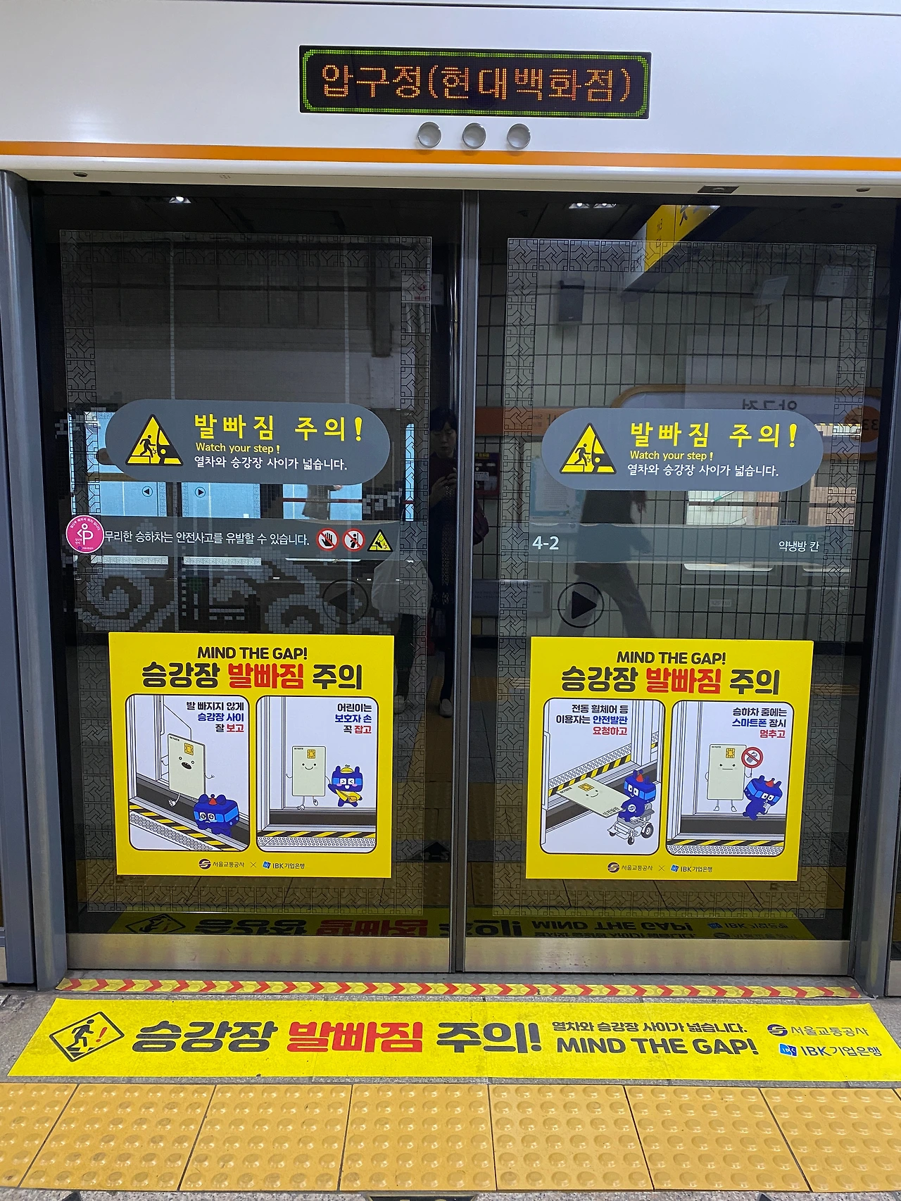 “발빠짐주의”를 들으며 지하철을 내린다. 보폭을 크게 해서 성큼 걷는다. 내 마음을 아는지 내린 정거장 문 앞에는 발빠짐주의가 그림과 글로 강조되어 있다. ”안전은 아무리 강조해도 지나치지 않습니다 “라는 표어처럼. “발빠짐주의”에 다시 한번 귀를 기울인다.