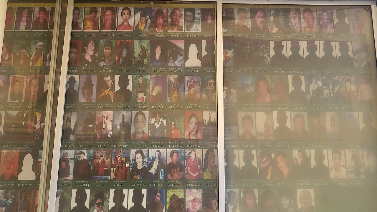 맥간 남걀사원 입구에는 티베트의 독립을 외치며 분신한 사람들의 영정이 눈에 들어온다.