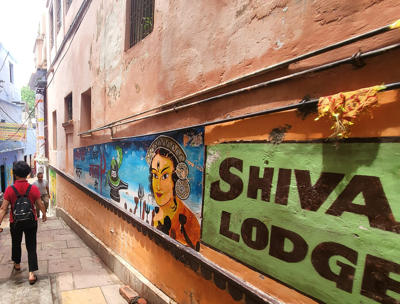 좁디좁은 골목을 걷다가 만난 '시바 숙소'(Shiva Lodge) 안내 그림이 여행자의 눈길을 잡는다.