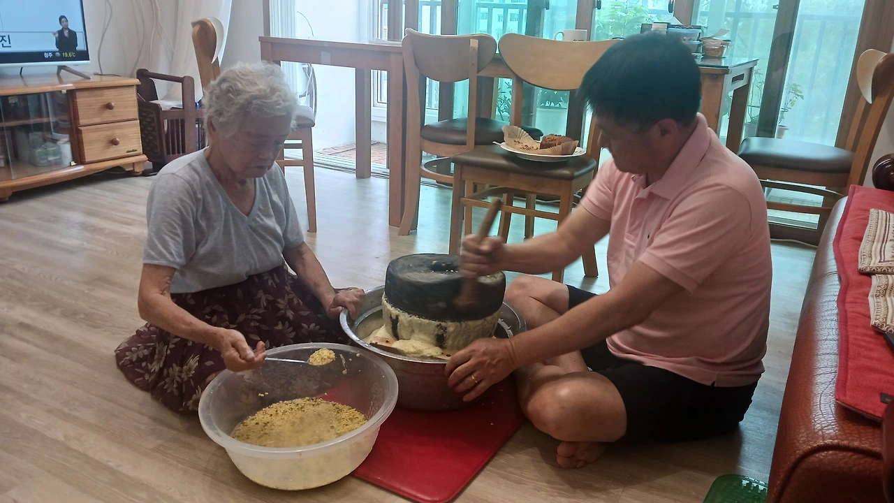 밤새 불린 녹두를 가는 것은 별로 힘든 일이 아니다. 후다닥 끝내려는 내게 어머님은 또 말씀하신다.