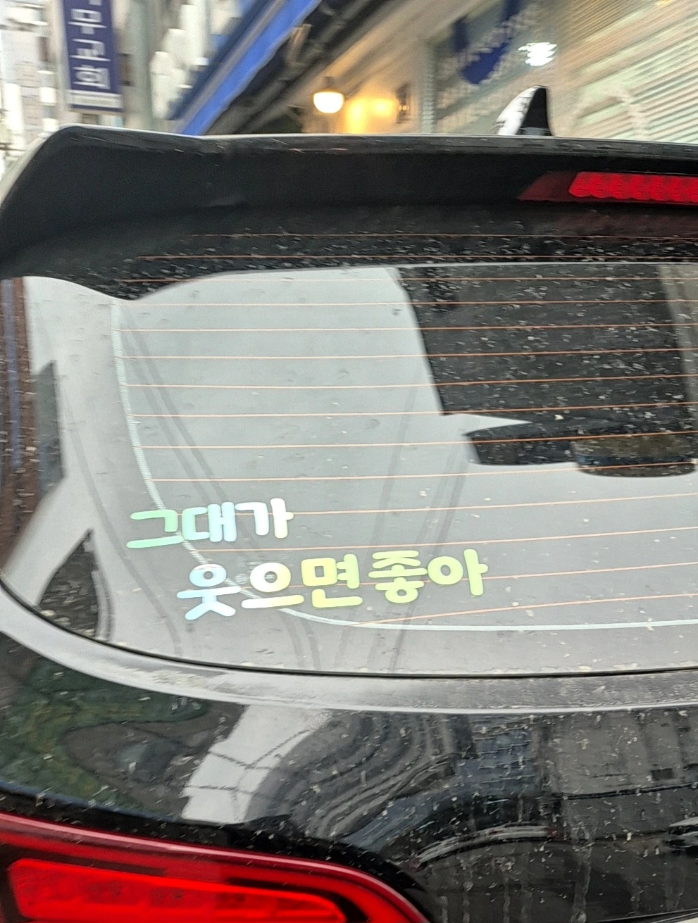 자동차 뒷유리에 붙어 있는 짧은 말 한마디.