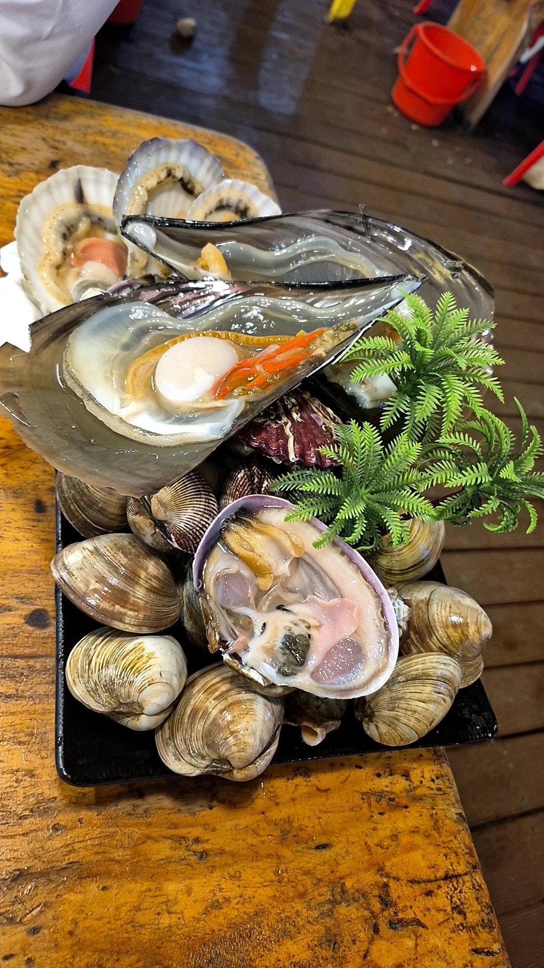 조개구이 소짜리와 해물칼국수를 주문했다.