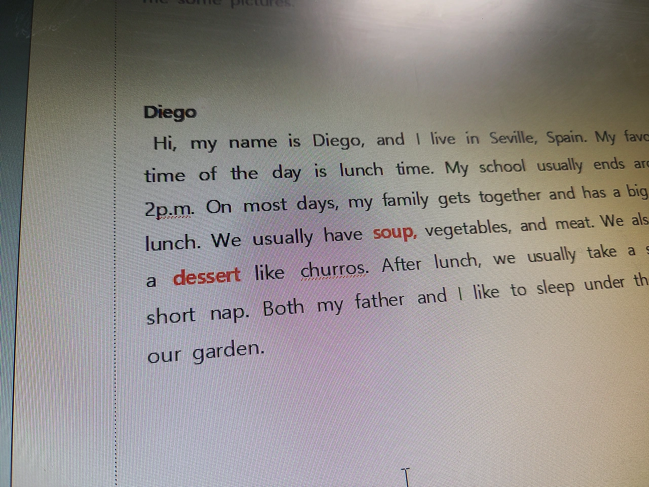 하루는 교수님이 빔프로젝트로 띄워 둔 교습 자료를 돌아가면서 한 문단씩 읽게 시키셨어요. 제 차례가 왔습니다.