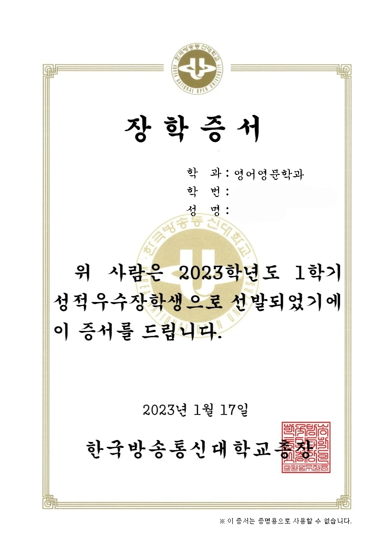 엄마! 나 전액 장학생이야~~!!