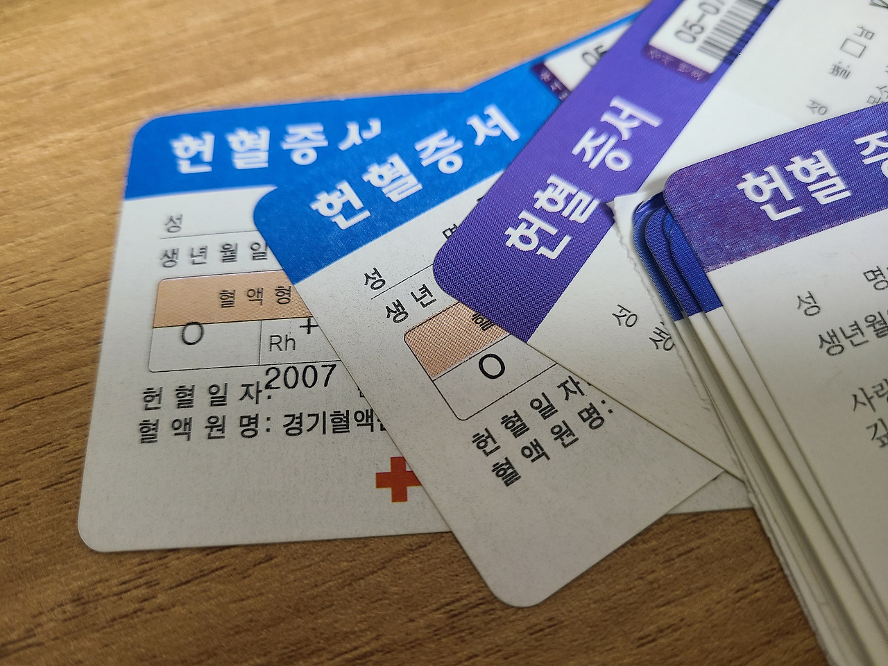 아쉽게도 그때 헌혈증서는 다 잃어버렸대요.