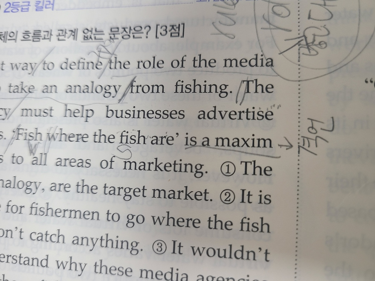 독해 수업 시간이었습니다.