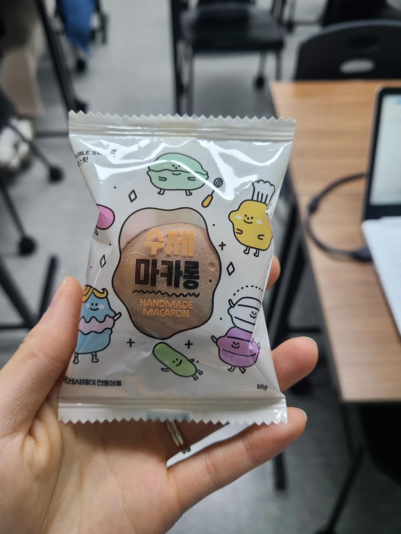 저는 효영이가 쓰레기를 저한테 주는 장난을 치는 줄 알았는데 자세히 보니 마카롱인 거예요.