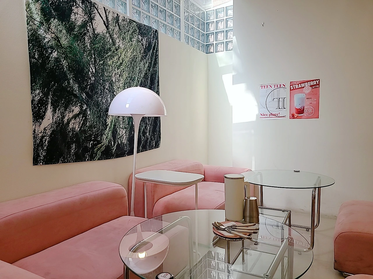 하이틴 영화 여주인공의 방이라는 착각이 들 만큼 아기자기하고 핑크빛으로 가득한 쇼파 좌석,