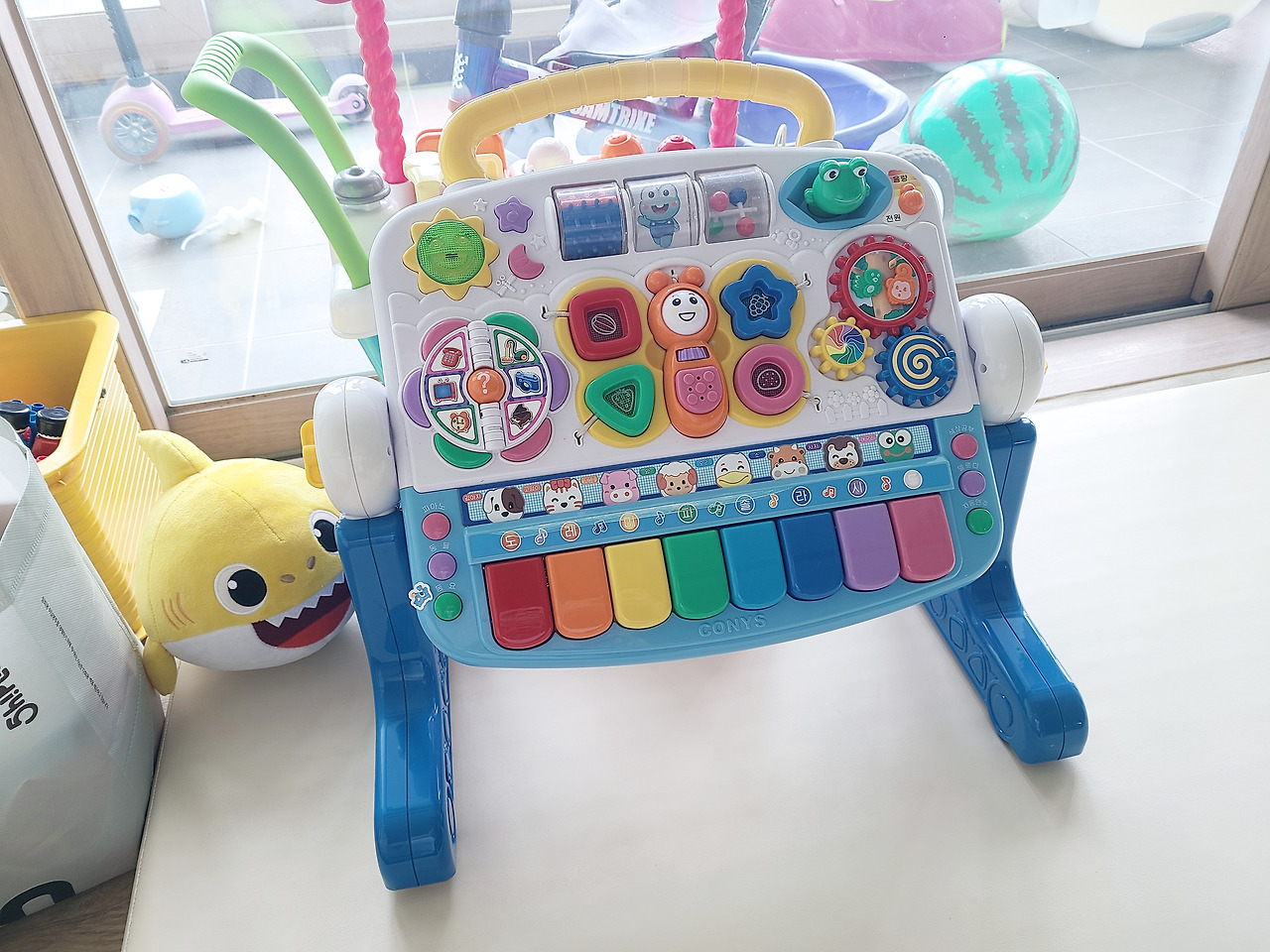 쇼파에서 일부러 미끄러지기 놀이를 하다가 조카는 에듀테이블 모서리에 옆구리를 부딪혔다.