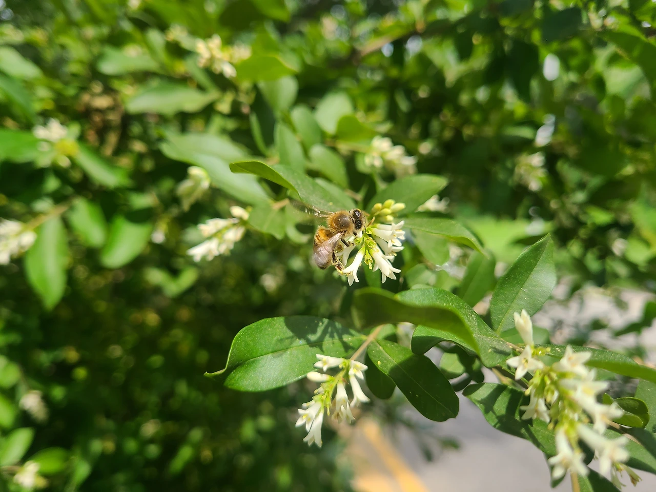 일광욕을 하면서 산뜻한 마음으로 걸어오는데 쥐똥나무 꽃향기가 제 발걸음을 멈춰 세웠습니다.