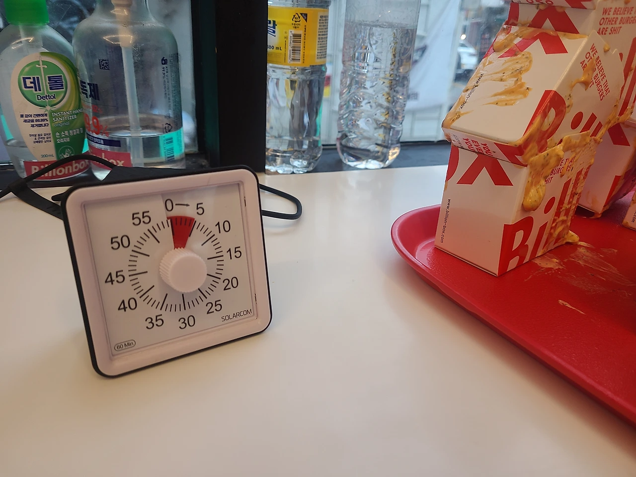 다 먹고 직원분께 알리고 흘린거 닦고 하느라 스톱워치 사진을 조금 늦게 찍었다.
