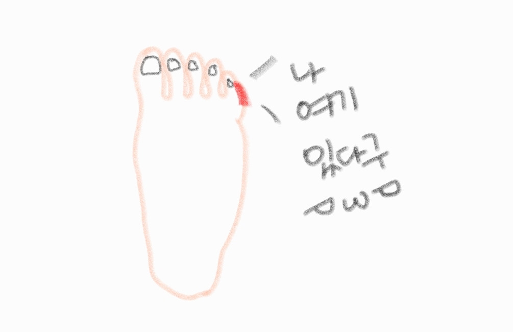 나는 발에 굳은살이 있다. 정확히 말하면 양쪽 발의 새끼발가락에 있다. 나는 약간의 오다리이고 어릴 때 팔자걸음을 걸어서 엄마에게 혼이 나곤 했다. 아마 걸음걸이에 문제가 있어 새끼발가락 부분이 반복된 압박을 받아 생긴 것 같다.