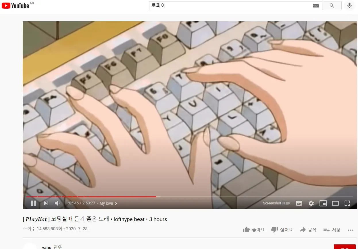 지금 내가 글 쓰면서 듣고 있는 로파이 음악.