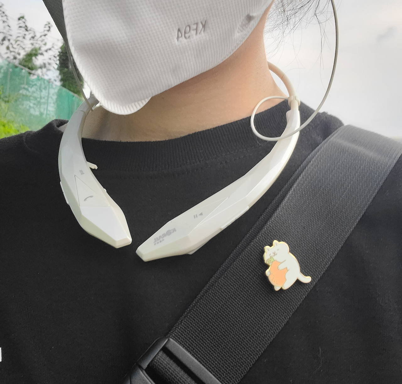 내가 지하철에서 넷플릭스 안 보면 죽는 병에 걸린 것도 아닌데 몇 번 덜 지루하게 가자고 집에 있는 동그란 유선 이어폰을 두고 새 이어폰을 사는 게 아직은 시기상조 같았어요. 나중에 정말 필요해지면 살 지도 모르지만 지금은 안 사고 싶어서 마음을 접었습니다. 썩는데 300년 걸리는 전자 쓰레기를 추가로 만들지 않은 셈이지요. 그러다 문득 5년 전쯤 유행했었던 넥밴드 블루투스 이어폰이 생각났습니다. 택배 기사님들이나 퀵 기사님들이 많이 썼고 일반 직장인들에게도 큰 붐이 일어나서 제 친구들도 가지고 있던 제품이었어요. 저는 당시 다니던 식품 회사에서 코레일과 협업했던 적이 있는데, 그때 코레일 로고가 박힌 제품을 기념으로 받았었습니다.