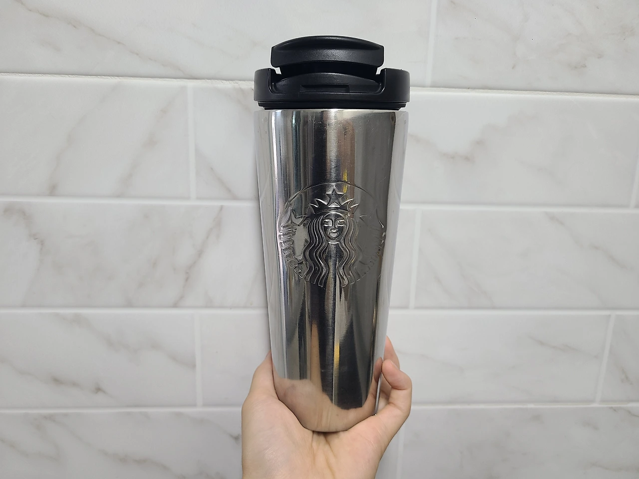 별로 안 이쁜 민둥민둥한 스뎅같은 제 텀블러입니다. 쓴지 꽤 된건데 겉모습은 이래도 시원함 유지는 최고입니다.