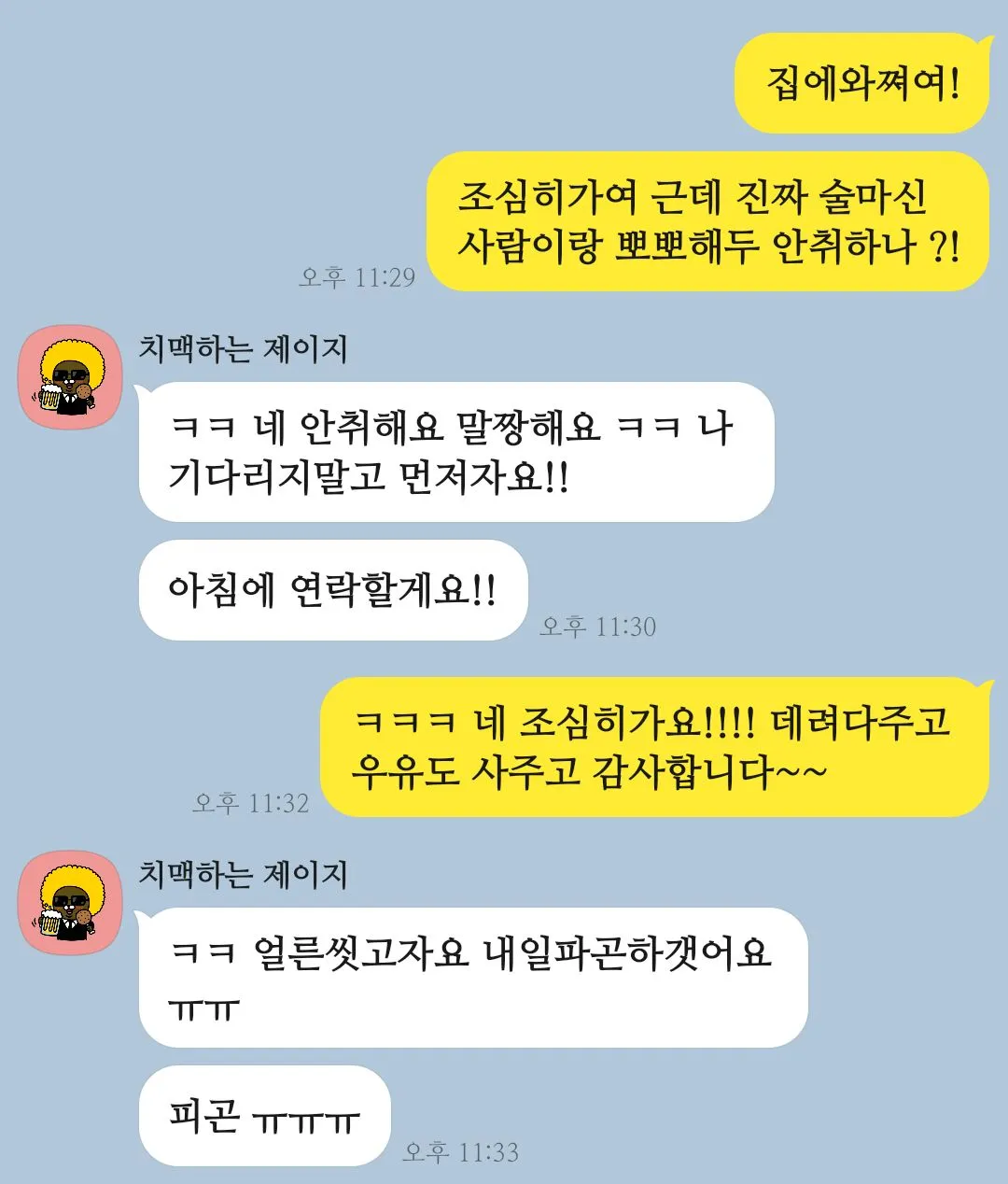 "조심히 가여 근데 진짜 술취한 사람이랑 뽀뽀해두 안취하나 ?!"