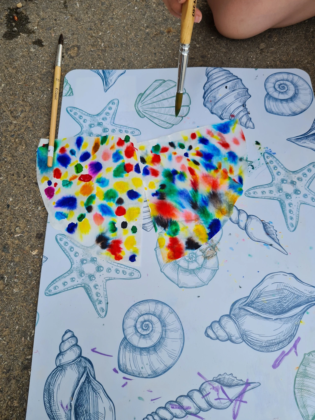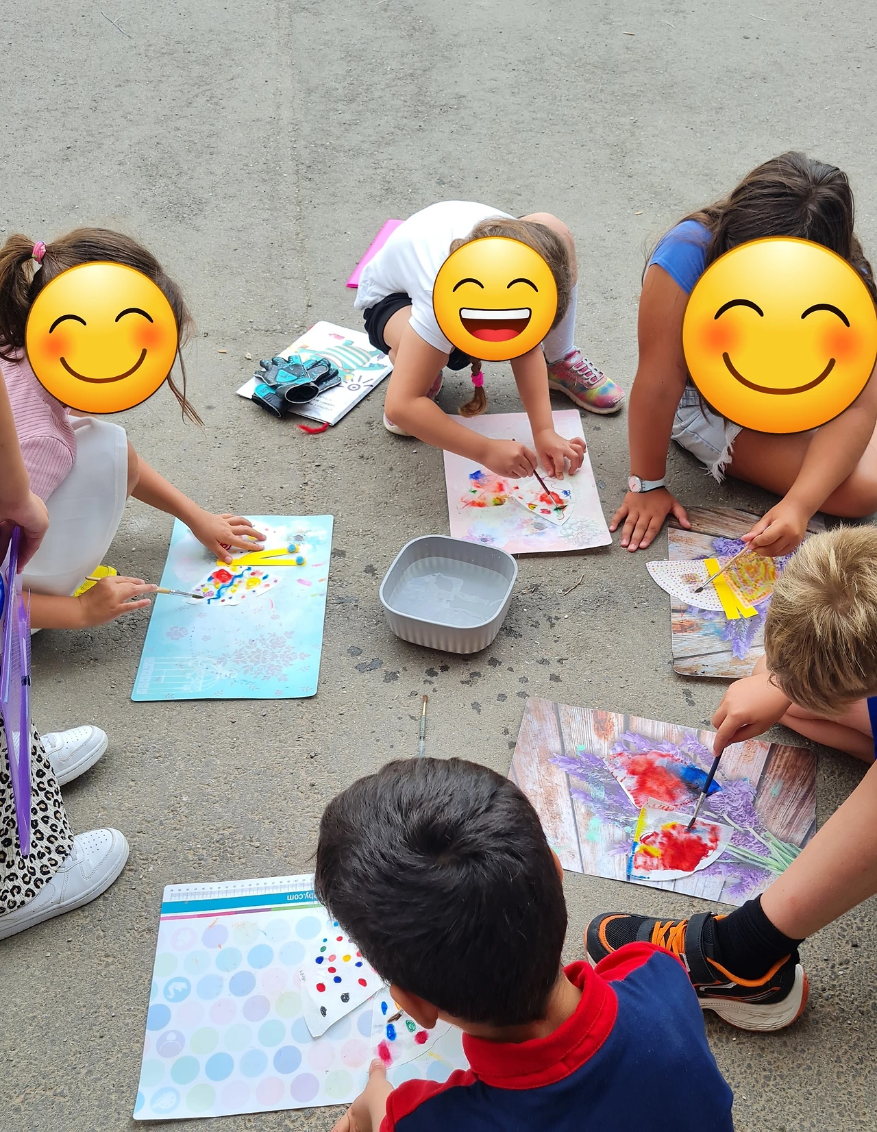 너무 더운 아이들... 밖의 그늘에 앉아서 물감놀이를 하였다.