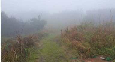 오름을 다시 맨발로 오른다. 숲의 안개가 자욱하다. 땅은 촉촉이 젖어 맨발로 밟으니 흙이 으깨어져서 발바닥 사이로 흙이 비집고 올라온다. 안개 자욱한 호젓한 산길을 혼자 걷다 보니, 가장 걱정되는 것이 멧돼지다.