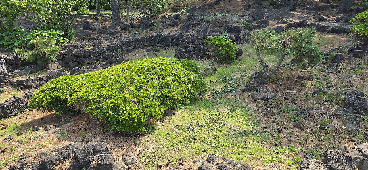 첫 번째는 곶자왈이다. 잡목이 우거져 어둑하고, 바닥은 기괴한 용암 돌덩어리이다. 습기도 많은 듯하여 안개 낀 저녁에는 무서운 귀신이라도 나올 듯 음산하고, 뱀등 파충류, 모기 등이 우글 거릴듯하다.