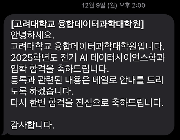 그렇게 두 번의 면접을 거쳐, 나는 고려대학교의 AI 데이터사이언스 전공으로 석사과정을 다니게 되었습니다.