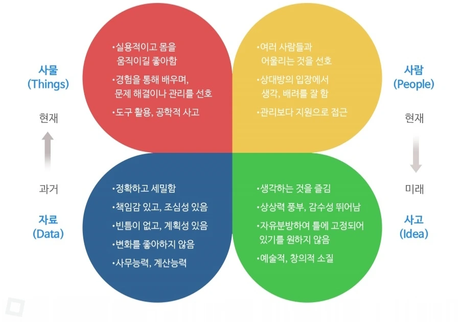 나는 스스로 느끼고있는 대로 '사람과 아이디어에 흥미를 느끼며 사람들에게 생각을 주는 방식으로 일하는 교육가유형'이 나왔다. 반면 나의 업인간호사는 사물에 흥미를 느끼고 현장에서 체험하며 일하는 방식의 현장가 유형에게 어울리는직업이었다.