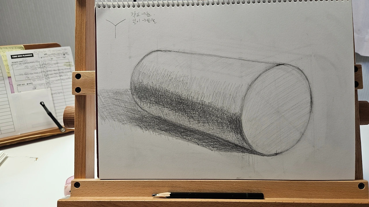 그림을 그리는 시간만큼은 그러지 말자 다짐한다. 적당한 거리를 두고, 숨을 고르고, 원기둥을 그리는 그때만큼은 힘 빼고 마음을 비워내자. 완벽하지 않아도 괜찮으니까...