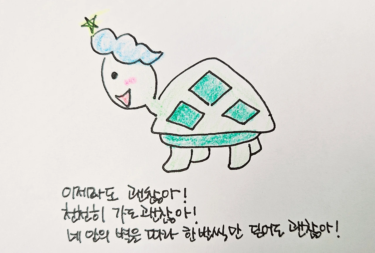 문득, '만약 내가 동물이라면 지금의 삶을 어떤 동물에 비유할 수 있을까?' 하는 생각이 들었다. 고양이, 병아리, 토끼, 강아지... 이런 귀염뽀짝한 동물에 빙의하고 싶었지만 아무리 생각해도 난 영락없는 '거북이'다. 본성 느린데 그걸 거스르고 빨라진 슈퍼거북이.