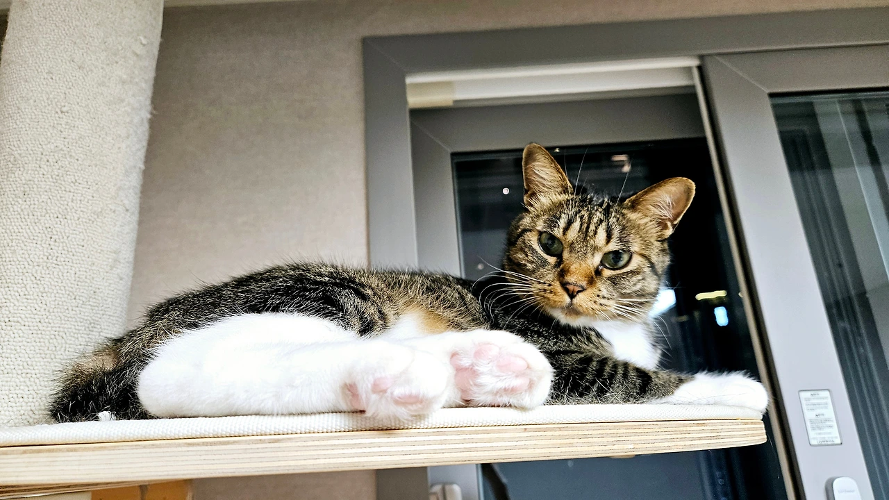 방에 들어가면 양말이는 캣타워 꼭대기에서 나를 가만히 내려다보고 있다. 아직은 반갑지 않은 거다. 내 손맛을 그리워하도록 양말이 코에 내 손을 갖다 댄다. 냄새를 맡은 양말이가 캣타워에서내려와 쓰러지면 쓰담쓰담해 주고 뒤로 숨으면... 난 쿨하게 퇴장한다.