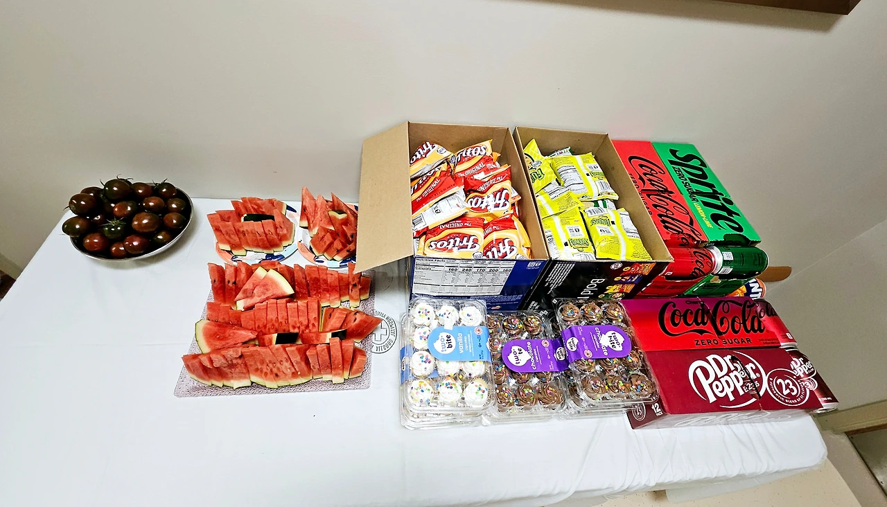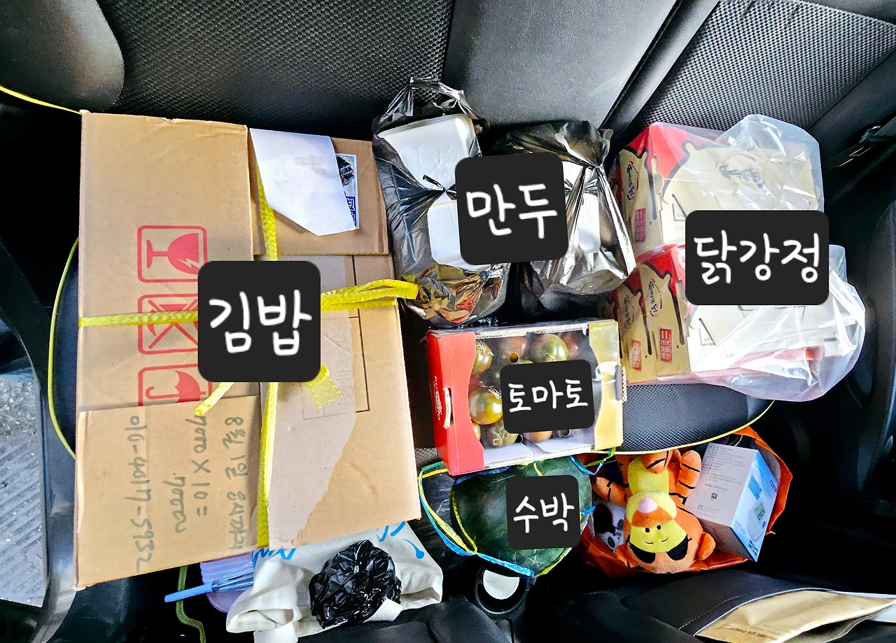 파티준비로 고단해 며칠 동안 숙면을 했을 정도다. 파티 당일, 출근하는 길에 시장에 들러 닭강정, 김밥, 수박, 만두를 챙겨 차에 실었다. 혼자 짐을 들고 3번을 왔다 갔다 하느라 출근하기도 전에 온몸이 땀으로 흥건했다.