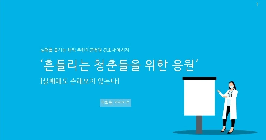 간호학과 학생만이 아닌 대학생들에게 전하고픈 메시지는 '실패해도 손해 날 게 없다'였다. 강의를 준비하며 돌아본 나의 진로는 실패의 순간들이 끊임없이 이어진 결과이며 '실패해도 손해가 없다'는 것을 일찌감치 깨닫고 '실패를즐겼기때문'이다.