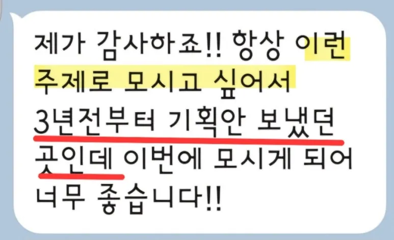 '하겠다'는 답을 보낸 후 받은 매니저님의 카톡은 나를 뜨거운 열정으로 가득 차게 만들기에 충분했다. 누가 내 이야기를 세상에 알리기 위해 3년간 준비를 해준단 말인가!