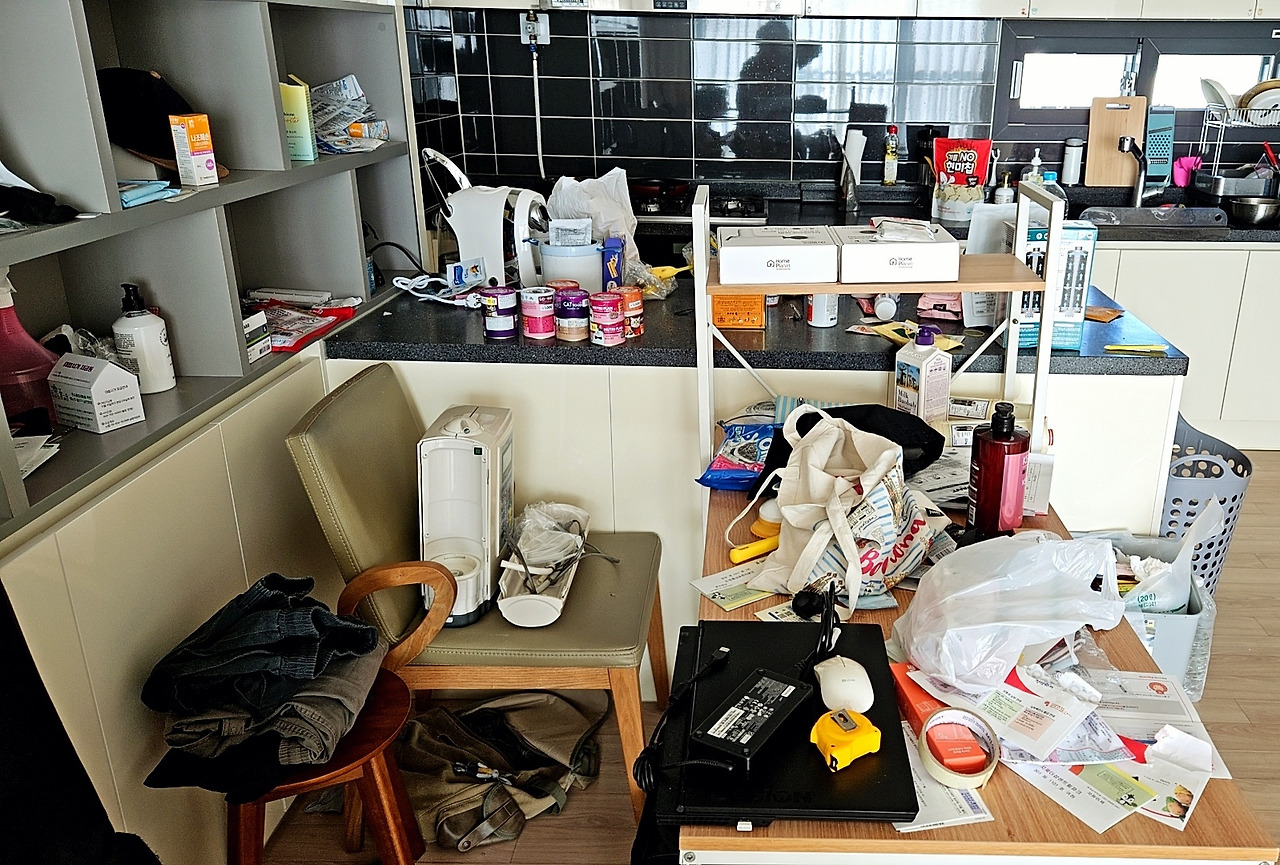 게다가 나에게 아파트는 너무나 큰 공간이었다. 퇴근 후 8시까지 루틴이 정해져 있는 일상에 매일 방 3개와 넓은 거실을 정리한다는 건 애초에 불가능했을지 모른다. 1년간 식탁 위에는 서류더미는 물론, 풀지 않은 택배, 헤어트리트먼트, 옷, 간식거리 일관성 없는 물건이 난잡하게 쌓여갔다.