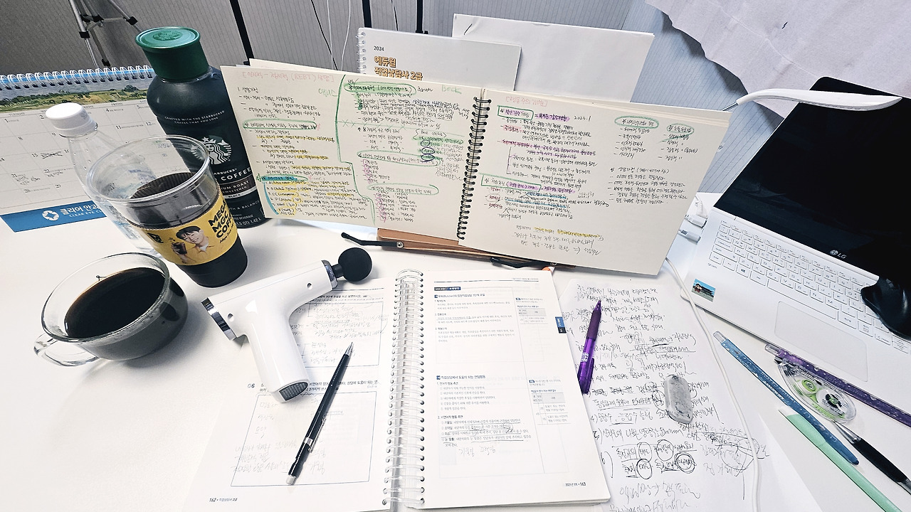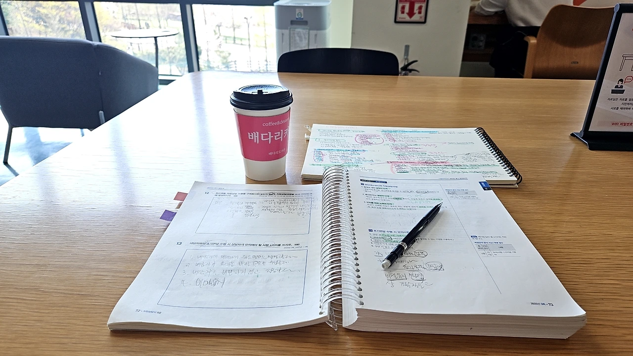 숨 막히게 조용하지 않은 내 방은 적당히 서늘했고, 무엇보다 눈치 보지 않고 소리를 낼 수 있었다. 알고 보니 나는 암기를 할 때 중얼거리며 외우는 타입이었다. 혼잣말로 정리하고, 내가 낸 소리를 들으며 외우고, 몸의 리듬을 타는 게 나만의 암기법이었다. 첫째 날 도서관의 고요함은 오히려 나를 억눌렀던 것 같았다. 나에게 필요한 건 고요함이 아니라, 나답게 표현할 수 있는 자유였다.