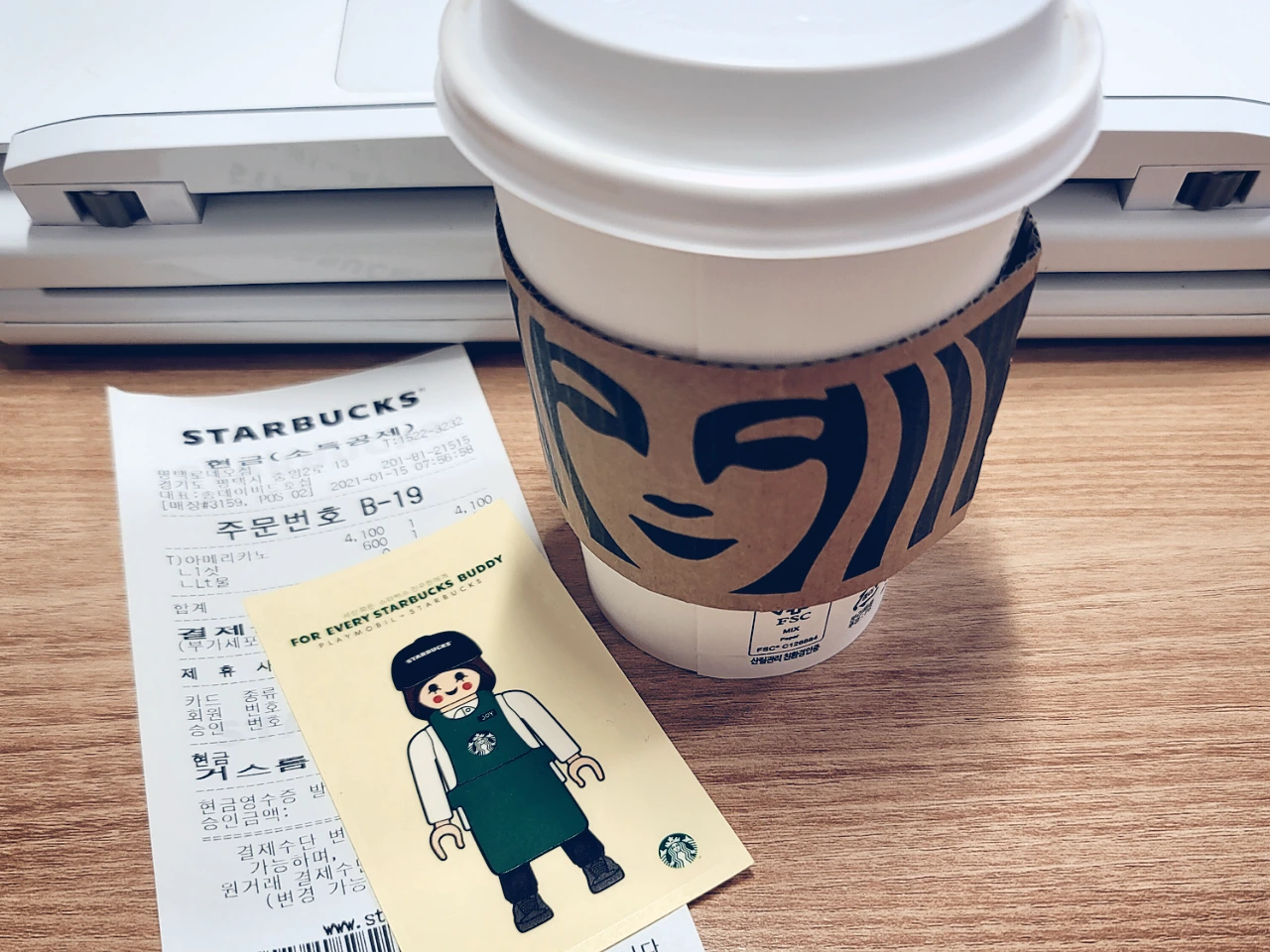 이왕 일찍 일어난 거 제일 좋아하는 커피를 사서 집콕 라이프를 짜자 하고 스타벅스에서 뜨아 한잔을 사 왔습니다.