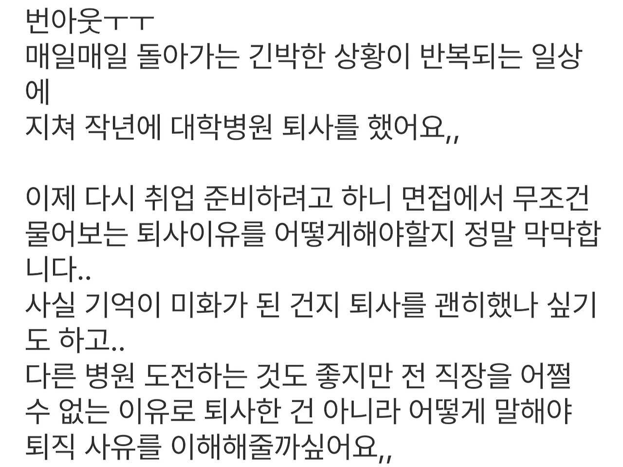 저는 학교 다닐 때부터 xx부서에서 경력을 쌓아, xx전문간호사가 되는 게 목표였습니다. 그런데 전 병원에서는 안타깝게도 원하던 부서에 발령을 받지 못했습니다. 하지만, 우선은 발령받은 부서에서 경험을 쌓고 기회를 봐서 xx부서로 로테이션을 요청할 생각을 했습니다. (x개월, 년)이 흘러 수간호사 선생님께 요청을 드렸지만 병원규정상 불가능하다는 대답을 들었습니다. 저는 xx 한 이유로 xx 전문 간호사가 꼭 되고 싶습니다. 그런데 (지원한) 병원은 (본인이 되려는 쪽)에 특화된 병원입니다. 저의 ~~ 한 경력과 경험으로 병원의 발전에 (어떻게) 이바지할 것입니다.