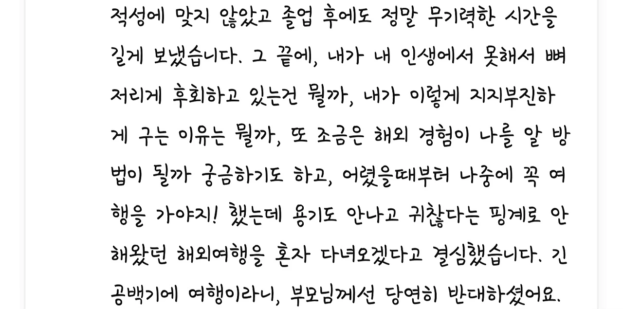 지난주, '20대에 꼬인 인생을 푸는 방법'이라는 영상을 올렸다. 영상에서 나는 대학을 입학하며 잘못된 전공을 선택한 것부터 20대가 꼬였고 그걸 알고 있었음에도 4년간 아무것도 하지 않았던 시간을 후회한다고 말했다. 솔직히 그때는 20대가 영원할 줄 알았다.