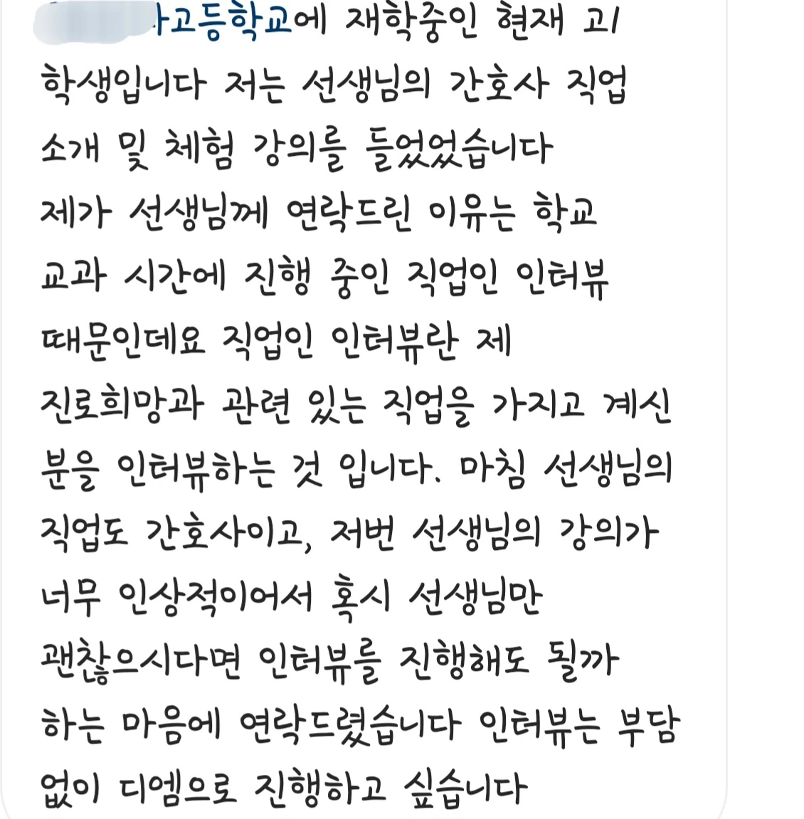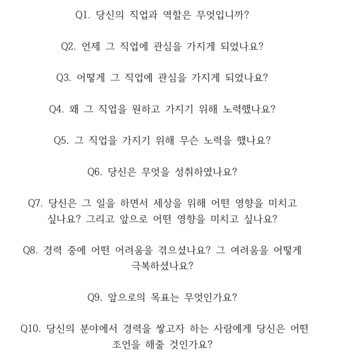요즘은 고등학교에서 자신의 희망 진로와 관련된 직업인에게 인터뷰를 해오라는 숙제를 시키나 보다. 몇 년 전부터 종종 학생들에게 인터뷰를 요청하고 싶다는 디엠을 받곤 했다.