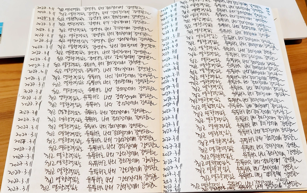 그 목표를 이룬 나의 모습을 상상하고 그 느낌을 느끼며 매일 100번씩 쓰면 어느 순간 그대로 이루어진다고 하는 말을 믿고 실행하기로 했다.
